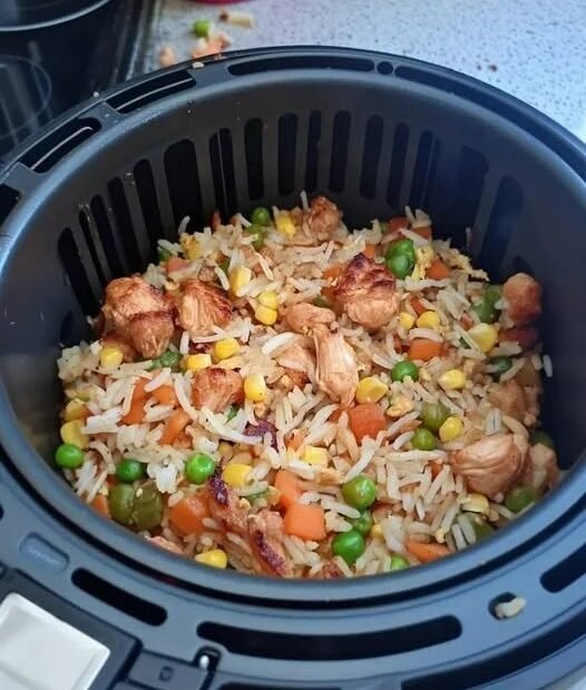 Air Fryer Chicken Fried Rice — quick, tasty, and better than takeaway! 😍