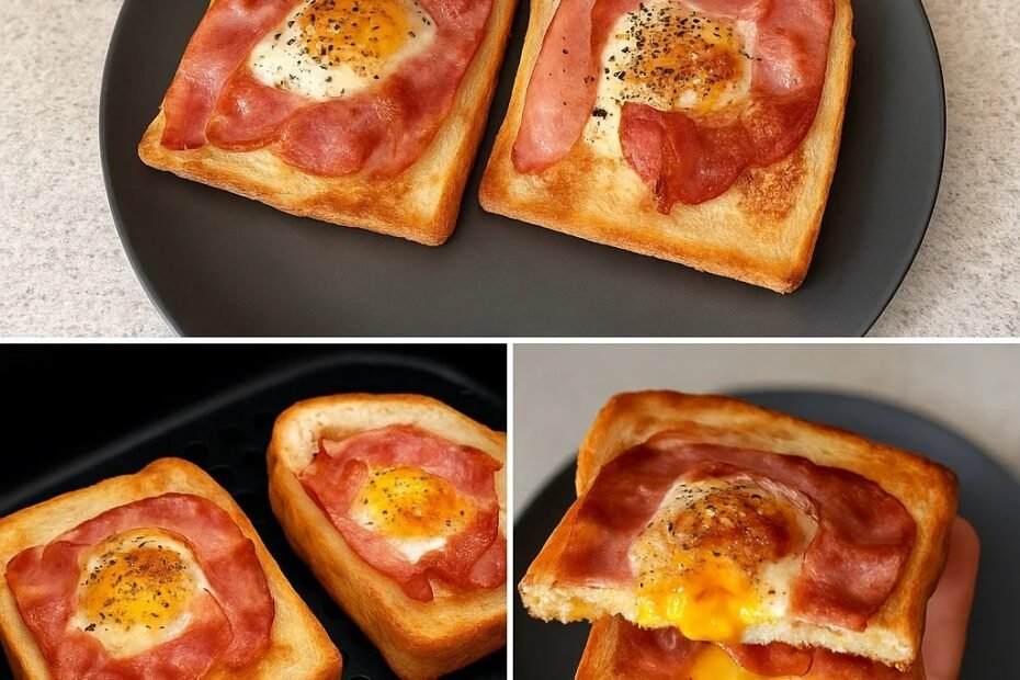 Golden toasted bread, crispy bacon, and a soft, gooey egg center — all made in your air fryer in under 10 minutes! 😍