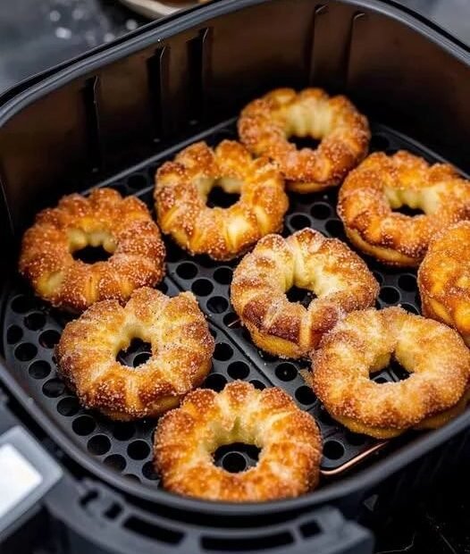 These golden, flaky apple rings are made by wrapping juicy apple slices in puff pastry, brushing with egg wash, and rolling in cinnamon sugar. The air fryer transforms them into crispy, caramelized perfection with a warm, tender apple center. 😍