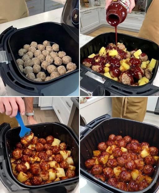 These BBQ Pineapple Meatballs in an Air Fryer are the perfect mix of sweet, smoky, and savory. Juicy meatballs get coated in rich BBQ sauce and caramelized with chunks of pineapple for a dish that’s honestly impossible to stop eating.