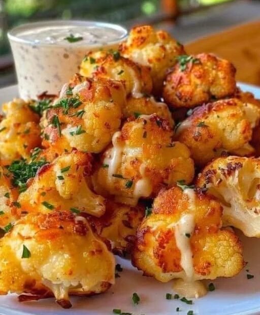 Crispy Air-Fried Cauliflower with Cheese and Garlic