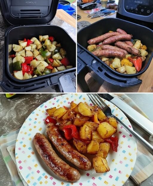 This Sausage, Potatoes & Peppers in the Air Fryer is the ultimate “throw it in and forget it” meal. Everything cooks together in one basket, creating crispy golden potatoes, sweet roasted peppers, and juicy, perfectly browned sausage.