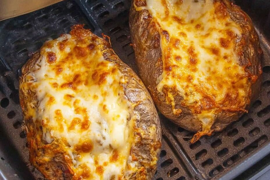 These Twice-Baked Potatoes in the Air Fryer are the ultimate comfort food—crispy potato skins filled with creamy, cheesy goodness and topped with a golden, bubbly finish.