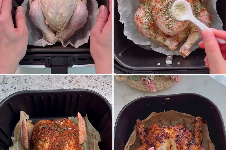 Cooking a Whole Roasted Chicken in an Air Fryer is one of the easiest ways to get perfectly crispy skin and juicy, tender meat. The air fryer circulates hot air around the chicken, creating a golden, flavorful crust while keeping the inside moist and delicious. This recipe is simple, requires minimal ingredients, and is perfect for a quick family dinner or meal prep for the week.