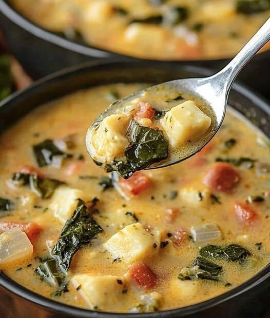 This Zuppa Toscana Soup is a rich, creamy, and comforting Italian-inspired classic made famous by restaurants—but honestly, this homemade version is even better. With savory sausage, tender potatoes, fresh kale, and a creamy broth, it’s the perfect cozy soup that tastes like it simmered all day.